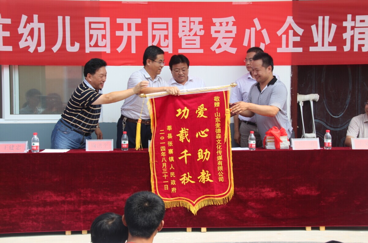 在開(kāi)園儀式上,公司董事長(zhǎng)王勇向尚莊幼兒園的孩子們捐贈(zèng)了價(jià)值2萬(wàn)余元的精美的兒童圖書(shū)及文具。董事長(zhǎng)王勇在捐贈(zèng)儀式上表示,山東麥德森文化傳媒有限公司是一個(gè)有著強(qiáng)烈社會(huì)責(zé)任感的企業(yè),這次捐贈(zèng)活動(dòng)希望能給學(xué)校的幼兒教育事業(yè)盡些綿薄之力,“希望這些精美的圖書(shū)和玩具能夠?qū)⒆觽兊某砷L(zhǎng)有所幫助”。