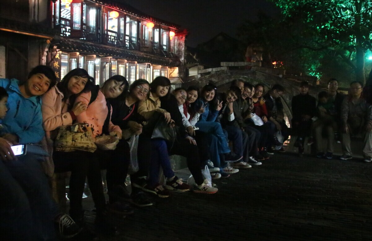 同事們意猶未盡,流連忘返,頓覺忘了疲憊,隨即趕赴下一站,中國第一水鄉——周莊。到達周莊已是傍晚,周莊古鎮依河成街,橋街相連,華燈初上,燈燈傍水,初得夜色如詩如畫。昆曲纏綿,吳歌悠揚,景情交融,美不勝收。大家游覽了富安橋、雙橋、沈廳、張廳、周莊八景等景點。走在周莊的街道上,真的領悟到那句“頭頂一線天,腳踏青石板”是何等的精辟。坐在雙橋旁,品著萬三蹄,你一句我一言,工作之余的那份親情和感動才是這夜最美的景。此景此情大家感慨萬分,體會到麥德森是一個融洽的團隊,是一個幸福的大家庭,更為身在麥德森而感到自豪!