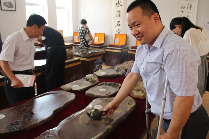 公司董事長王勇欣賞殘疾人優秀作品