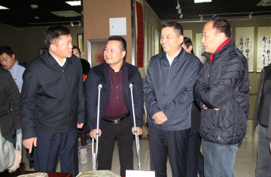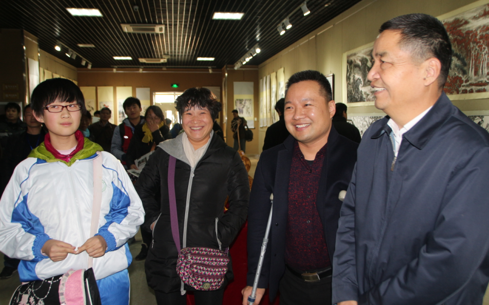 濟南市殘疾人文聯成立揭牌儀式結束后,由王勇董事長陪同領導參觀本次展覽并現場講解。展覽共有包括山東省工藝美術大師閻鐵魯、中國書畫家協會理事姚樂光、職業畫家王少毅、中國作協中國詩歌學會會員韓振廣、中國國畫院山水畫研究室副主任郭秀軍在內的百余名殘疾人參加,收集文學、書法、美術(國畫、漫畫、油畫等)、攝影、民間藝術(剪紙、扎染、石雕、葉脈畫、葫蘆等)等5類260余件文化藝術作品。