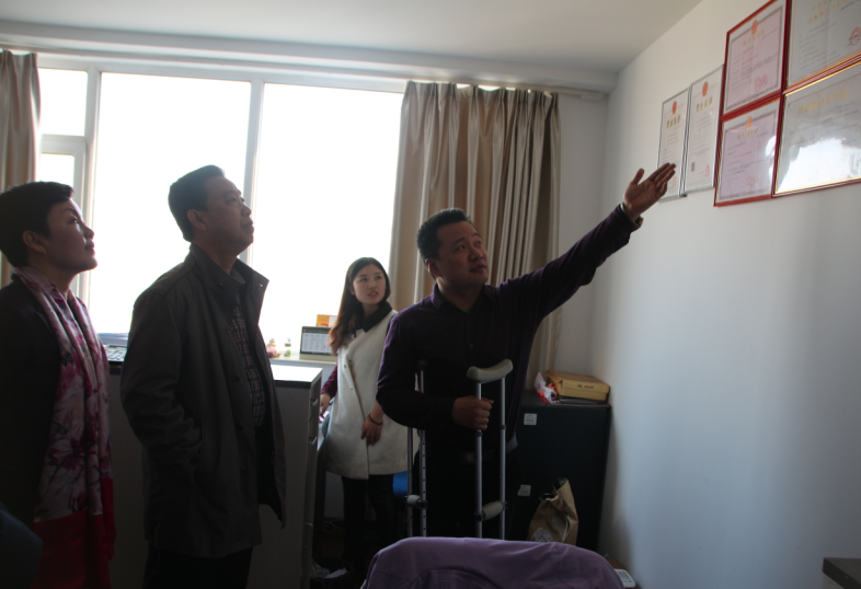 省人社廳及山東中醫(yī)藥大學領導在公司董事長王勇的帶領下參觀了公司的辦公場所和文化長廊,各位領導對企業(yè)文化氛圍與工作熱情表示了肯定,而且對王勇董事長積極吸收優(yōu)秀殘疾人員工的做法表示贊揚。針對“山東大學生十大創(chuàng)業(yè)之星”的評審,王勇董事長從個人簡介、企業(yè)介紹、業(yè)務開展情況及新業(yè)務的拓展、發(fā)展愿景、助殘活動等方面向省人社廳領導進行詳細匯報,匯報過程中省人社廳副巡視員姜清海對王勇董事長的創(chuàng)業(yè)毅力和積極幫助殘疾人的精神表示了高度欣賞,并不斷提出建設性的意見和建議。