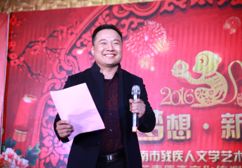 下午四時許,“新夢想、新希望”2016年迎春晚會在舞蹈《歡聚一堂》中精彩開場,主持人隨后介紹了到場的領導及貴賓,簡要表達了市殘疾人文聯和山東麥德森文化傳媒有限公司對各界嘉賓的熱烈歡迎及感謝,并邀請濟南市殘聯副巡視員、濟南市殘疾人文聯名譽主席劉紅衛女士上臺講話。劉紅衛女士的講話,飽含對殘疾人的祝福、對殘疾人藝術家的鼓勵與對麥德森文化傳媒有限公司的美好祝愿。晚會正式開始,濟南“我的兄弟姐妹藝術團”團長吳哲將以手語這種特殊的形式展示這場晚會。曾獲法國巴黎國際聾啞人藝術節金獎獨舞《飛天》、《魔術》以其獨特的藝術性和震撼性深深打動在場的所有觀眾,市殘疾人文聯的五協送祝福洋溢著新春的氣息,孕育著新的希望,為在場所有觀眾呈上一場文化的饕餮盛宴。隨后,市殘疾人文聯主席、山東麥德森文化傳媒有限公司董事長王勇向大家致以新春祝福。