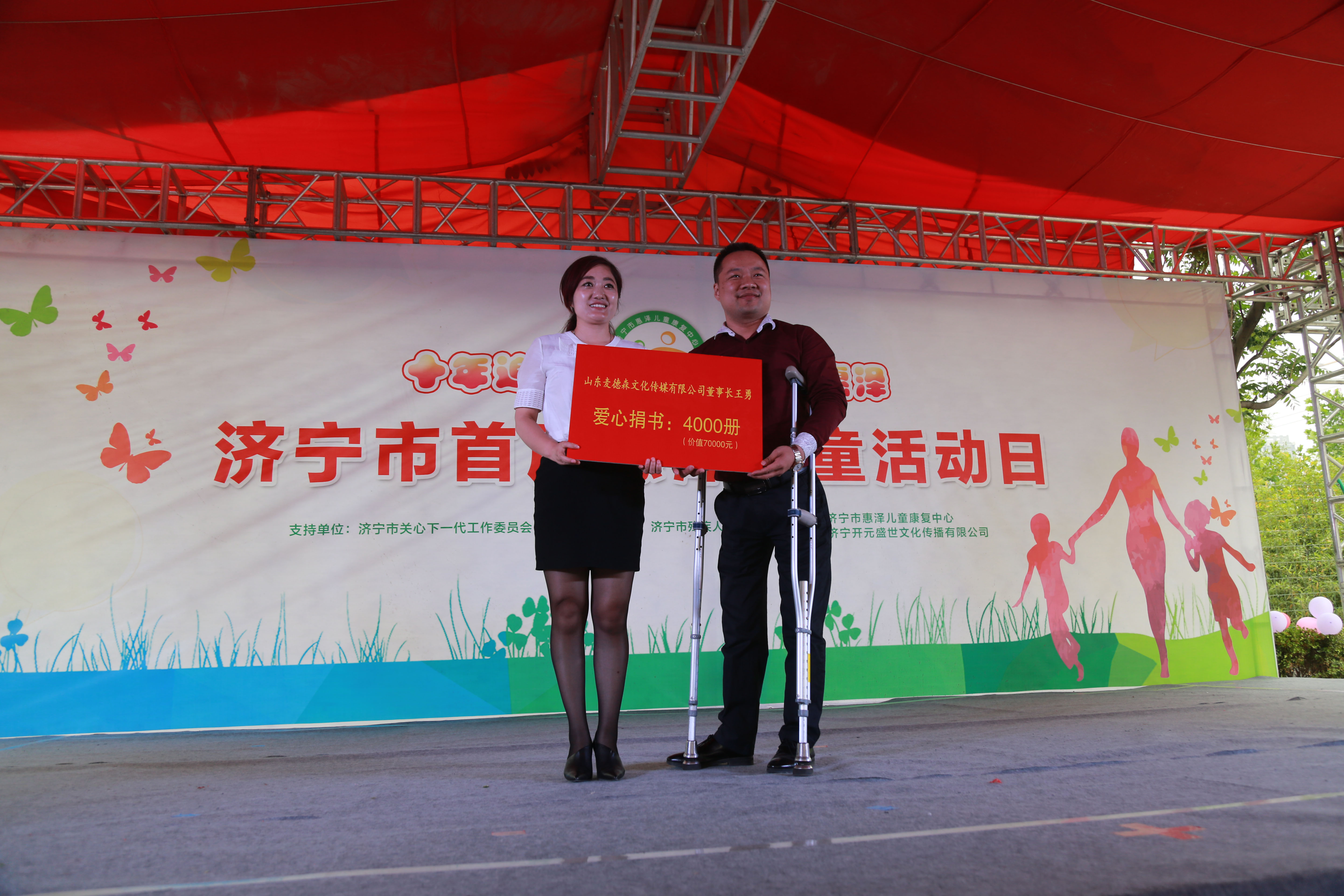 此次活動,共受贈5000多冊圖書,并募集善款19萬元,用于對殘疾兒童的救助。我集團董事長王勇受邀參加活動,并為濟寧市惠澤兒童康復中心捐贈了4000冊圖書。惠澤兒童康復中心是“聾兒之家”,也是許多兒童命運的轉折點,本場康復成果匯報演出,讓王勇董事長深受感動,他表示:兒童是國家的希望,殘疾兒童同樣也可以成為社會主義的頂梁柱,積極響應“關愛孤殘兒童,讓愛灑滿人間”這個主題,他會盡最大的努力幫助這些可愛的殘疾兒童,并希望越來越多的愛心人士關注這個群體;而作為一名殘疾人企業家更有一種持續關注公益事業的使命感。