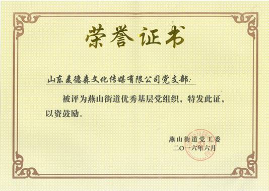 同樣值得麥德森人驕傲的是,在6月29日,山東麥德森文化傳媒有限公司黨支部被燕山街道黨工委評為燕山街道優(yōu)秀基層黨組織。