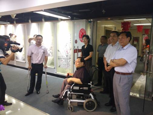 在各級殘聯領導以及我集團董事長王勇的陪同下,呂世明副主席蒞臨我集團考察調研。經過王勇董事長的解說,呂世明副主席對我集團的企業文化有了深層次的理解,給予了極大的贊賞。在王勇董事長的引導和介紹下,呂副主席參觀了勵志文化長廊,對文化長廊的建設提供了指導性的建議,并對王董事長積極為殘疾人藝術工藝品提供展銷平臺及就業機會表示贊揚,希望可以建設越來越多類似的平臺,為更多殘疾人謀取更大福利。隨后,王勇董事長陪同呂世明副主席參觀了我集團的辦公環境,呂世明副主席同我集團的殘疾人員工進行了親切交談。