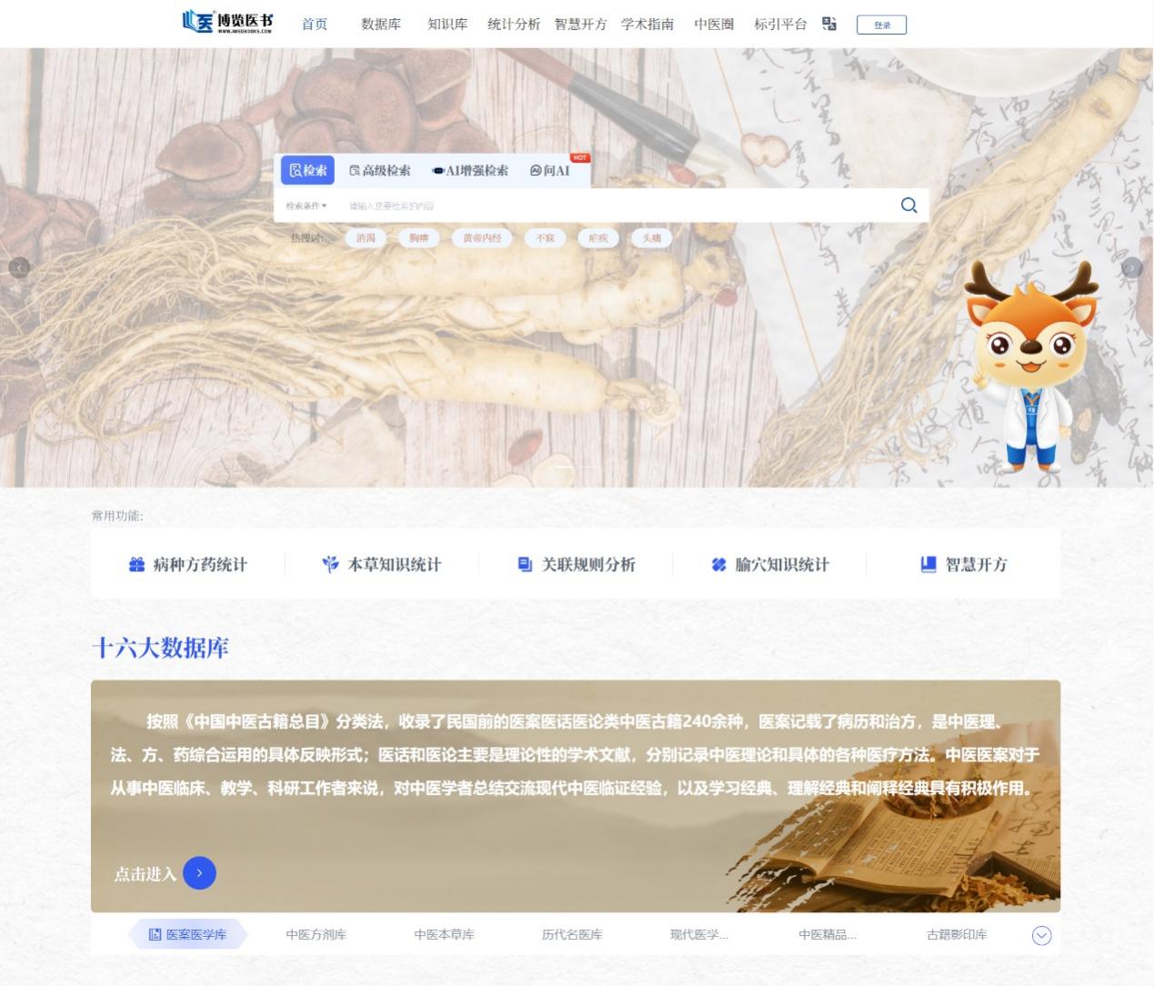 山東麥德森發展集團打造的中醫古籍文獻知識信息服務平臺,通過系統性整合中醫藥古籍與臨床資源、名老中醫的診療案例、經典方劑應用數據及病種方藥等海量數據,為中醫臨床診療、科研課題設計及教學案例挖掘提供了數據支撐,目前已成為中醫科研、教學和臨床當中的常用工具。