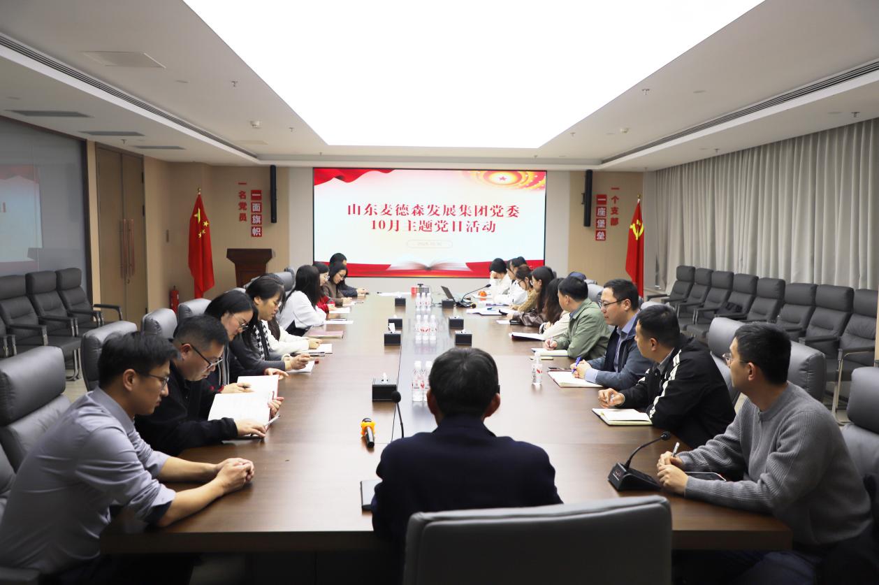 10月30日,山東麥德森發展集團黨委在厚德樓會議室組織開展10月份主題黨日活動。集團20余名黨員參加。