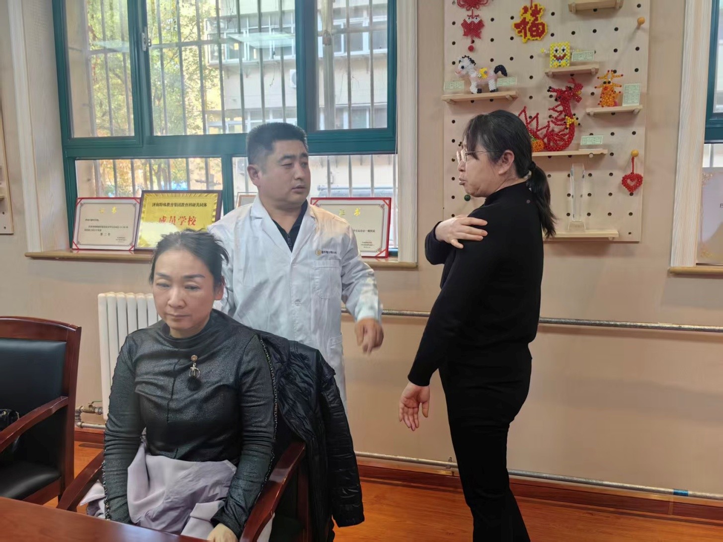 儀式結束后,活動進入溫情滿滿的義診環節。集團旗下盲手道項目高級推拿師黃旺與山東新中魯中醫醫院醫療團隊共同為濟南市黎明學校教職員工提供健康咨詢、中醫把脈、推拿按摩、常見病預防建議等“義診”服務。活動的開展不僅是對特教工作者的暖心致敬,更是優質醫療資源向助殘工作者延伸的切實舉措,讓“你們守護孩子,我們守護你們”的溫暖承諾落地生根。