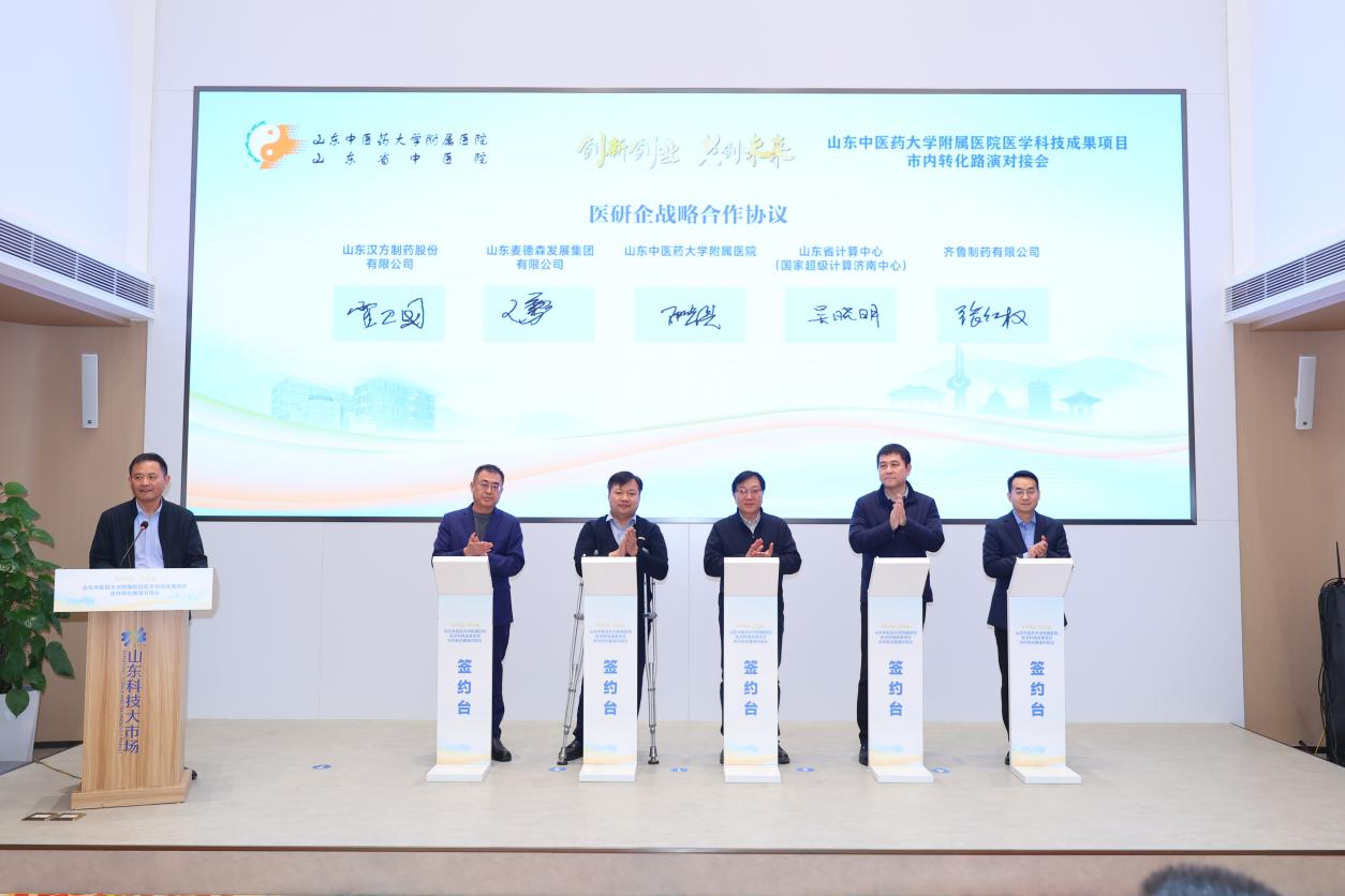 活動現(xiàn)場亮點(diǎn)紛呈,山東中醫(yī)藥大學(xué)附屬醫(yī)院與山東省計(jì)算中心(國家超級計(jì)算濟(jì)南中心)、山東麥德森發(fā)展集團(tuán)有限公司等多家單位集中簽署醫(yī)研企戰(zhàn)略協(xié)議,合作內(nèi)容涵蓋戰(zhàn)略合作、臨床研究、健康產(chǎn)品開發(fā)及具體技術(shù)轉(zhuǎn)化等多個核心領(lǐng)域,為中醫(yī)藥科技成果轉(zhuǎn)化筑牢合作根基。
