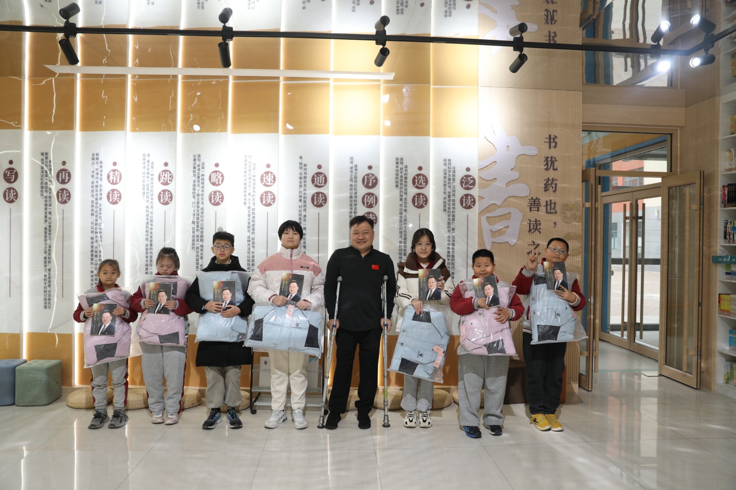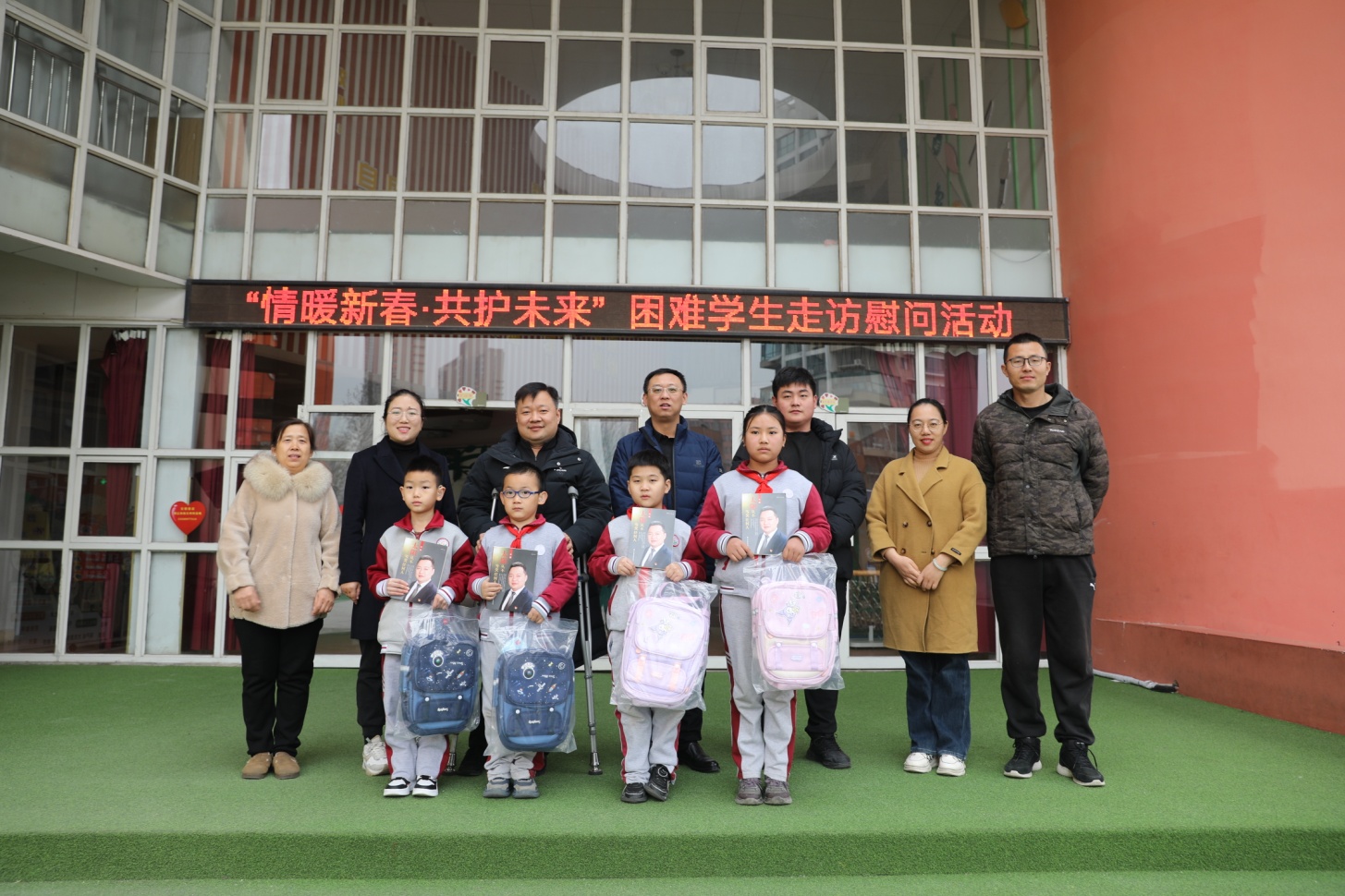 在唐冶小學活動現場,校方詳細介紹了受助學生的家庭情況與學習近況。隨后,舉行了簡短而隆重的捐贈儀式,慰問團為現場8名困難學生代表發放了精心準備的“新春愛心禮包”。禮包內含書包、文具等學習生活物資,以及王勇書記的個人傳記《太陽從不虧欠任何人》,不僅承載著物質上的幫扶,更傳遞了精神上的慰藉。