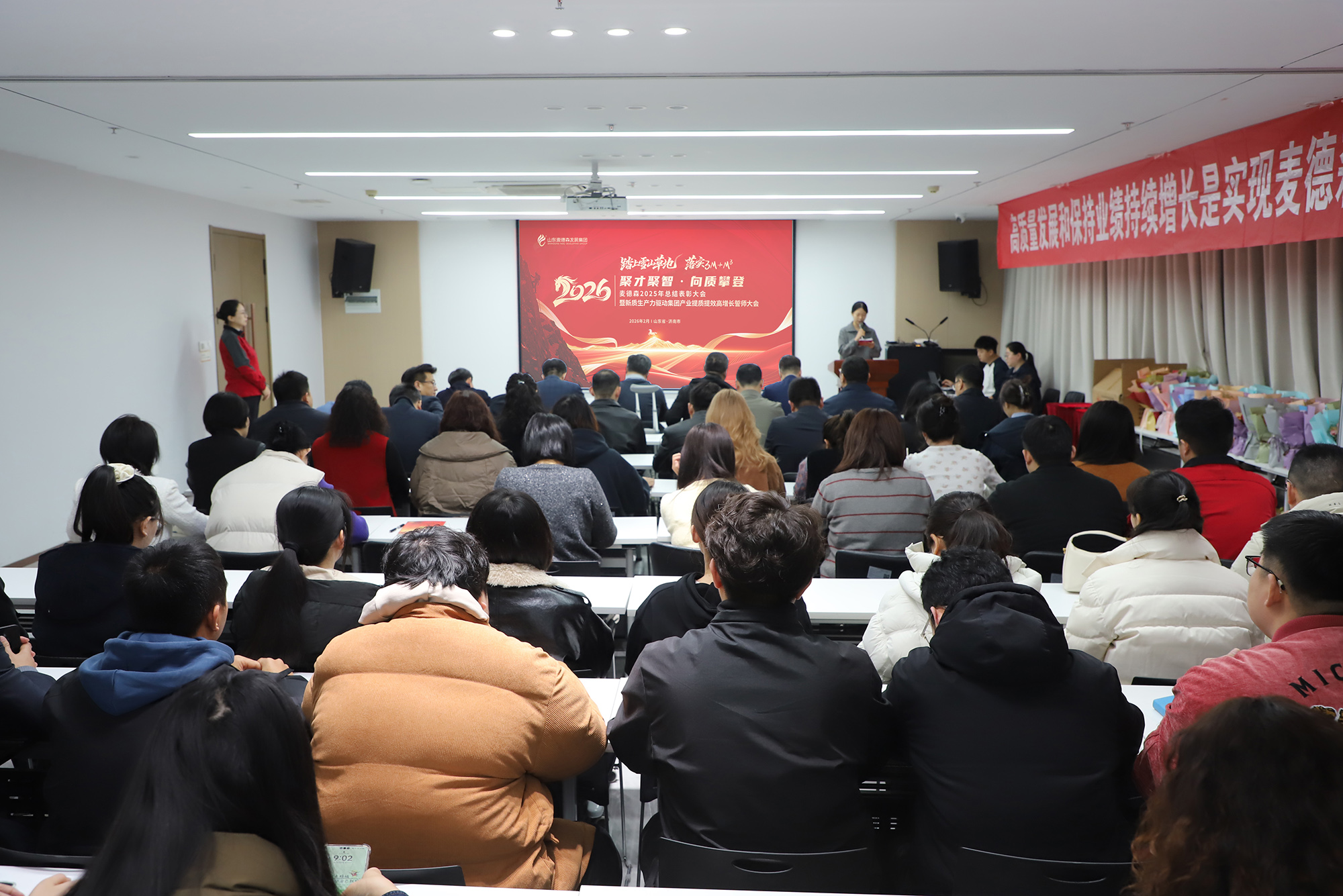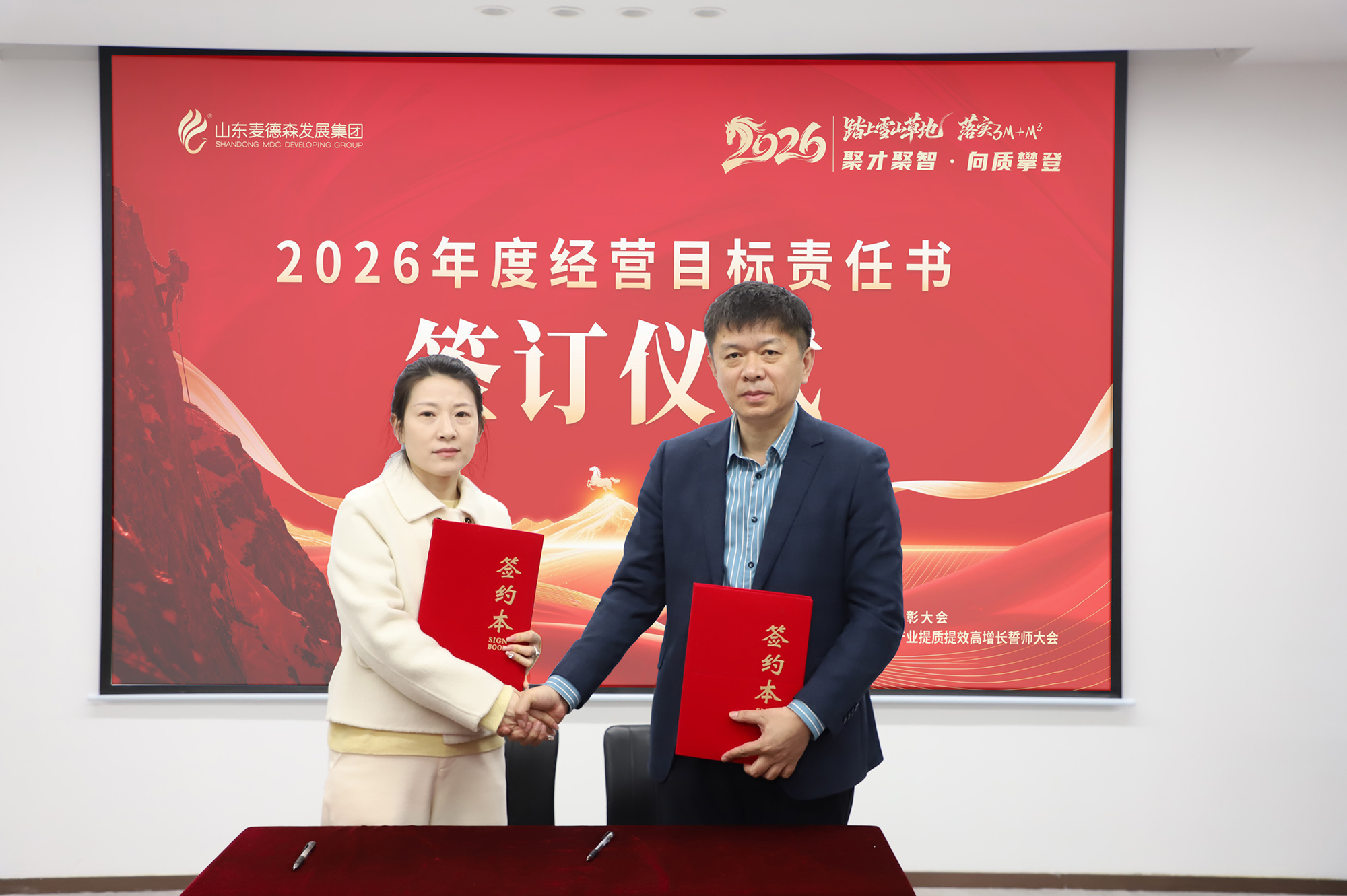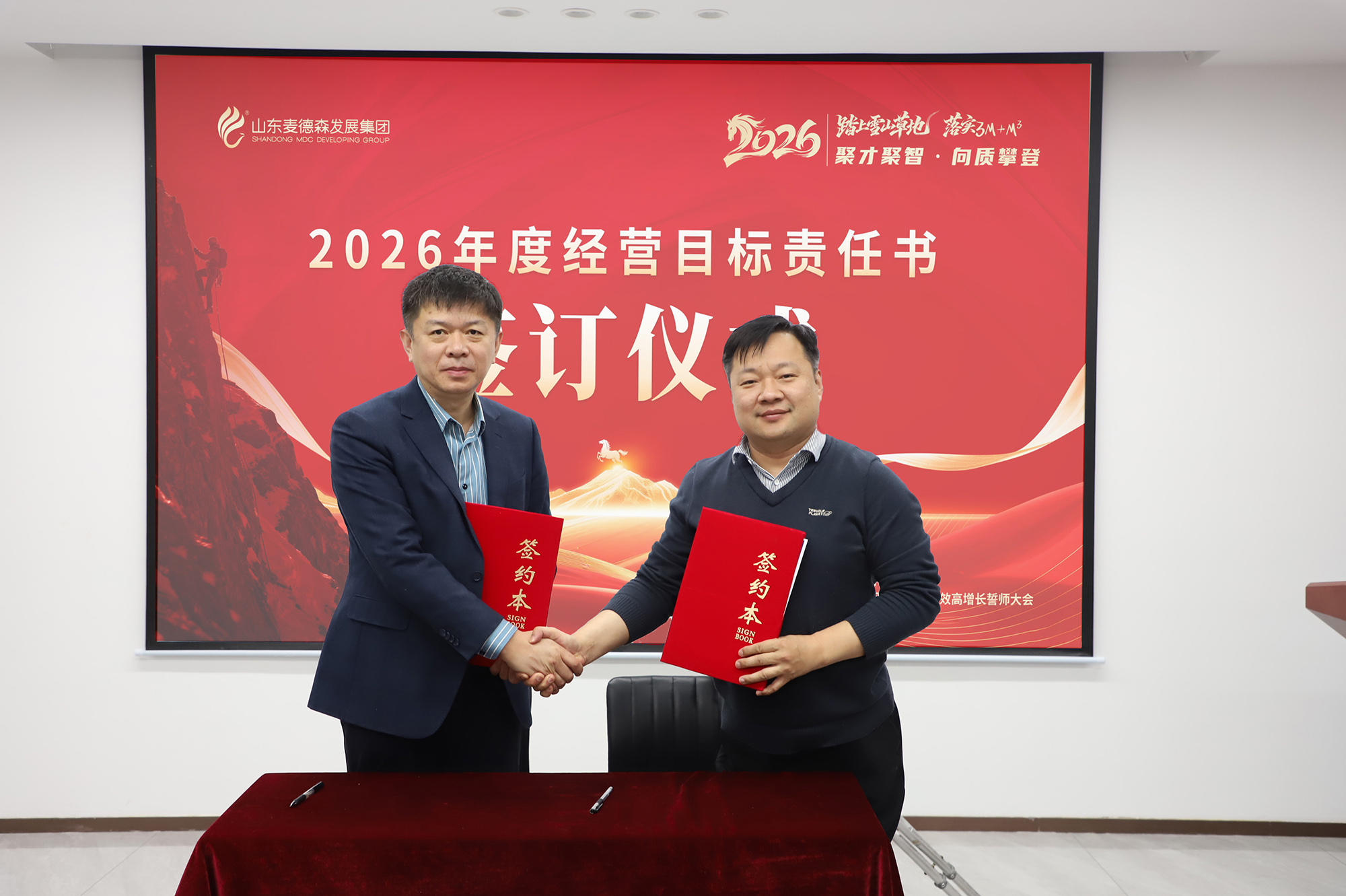春風浩蕩滿目新,揚帆奮進正當時。2026馬年新春將至,2月13日,在辭舊迎新的美好時刻,山東麥德森發展集團在總部博新樓會議室隆重召開以“踏上雪山草地、落實3M+M3,聚才聚智、向質攀登”為主題的2026新質生產力驅動集團產業提質提效高增長誓師大會。