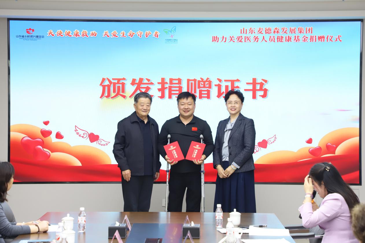 山東麥德森發展集團捐贈10萬元 助力關愛醫務人員健康基金