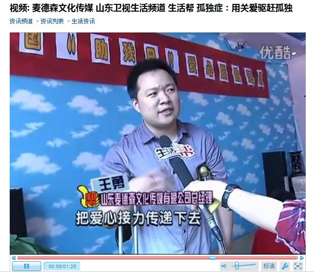 山東衛視生活頻道  生活幫欄目對我公司捐贈活動進行報道。