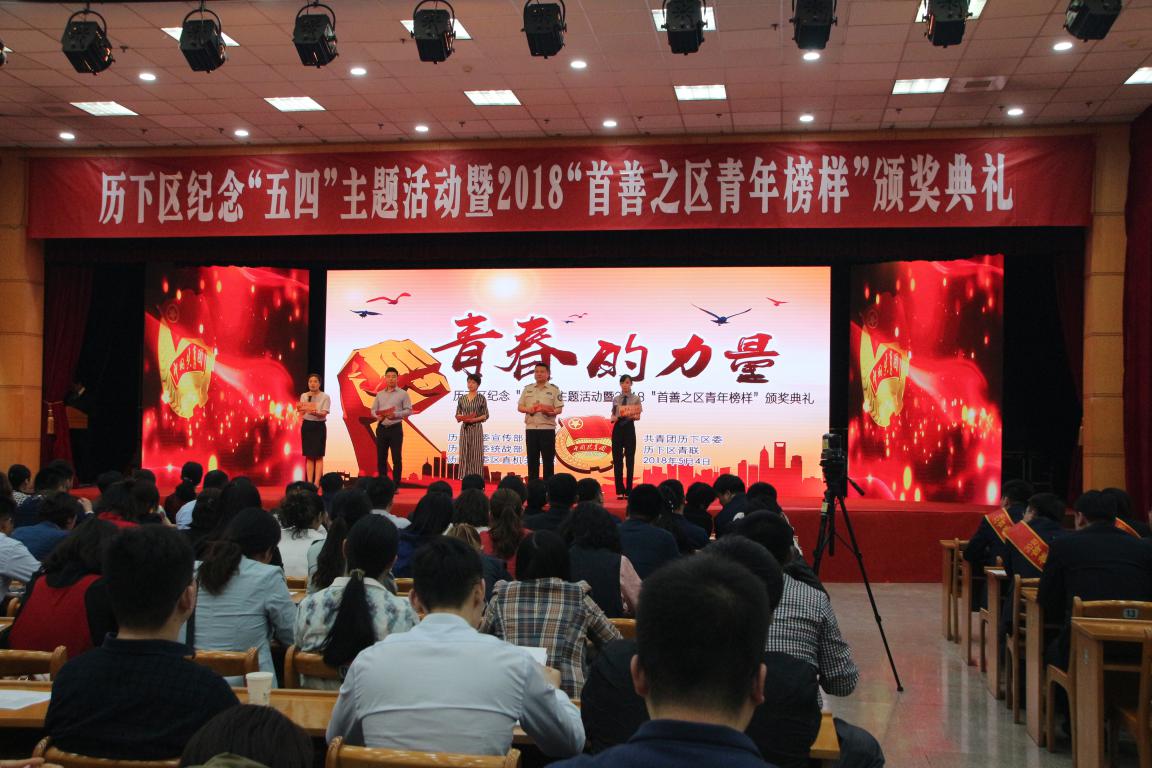 本次活動共評選出5大類50名青年榜樣,以及4個青年榜樣群體進行了表揚,并由10位青年榜樣代表和4個青年榜樣群體代表上臺領獎。典禮上鏗鏘有力、振奮人心的朗誦,優美動聽、旋律悠揚的歌聲,將青春的力量送到了每個人的心中,一段段青年們的故事視頻,更是將典禮推向了高潮。