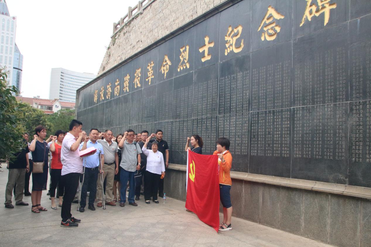 站在濟南戰(zhàn)役革命烈士紀念碑前,面對鮮紅的黨旗,參加活動的全體人員高舉右手莊嚴宣誓,一起重溫入黨誓詞,向革命先烈們致以崇高的敬意,表達了自己不忘初心,愿為黨的事業(yè)奮斗終身的決心。