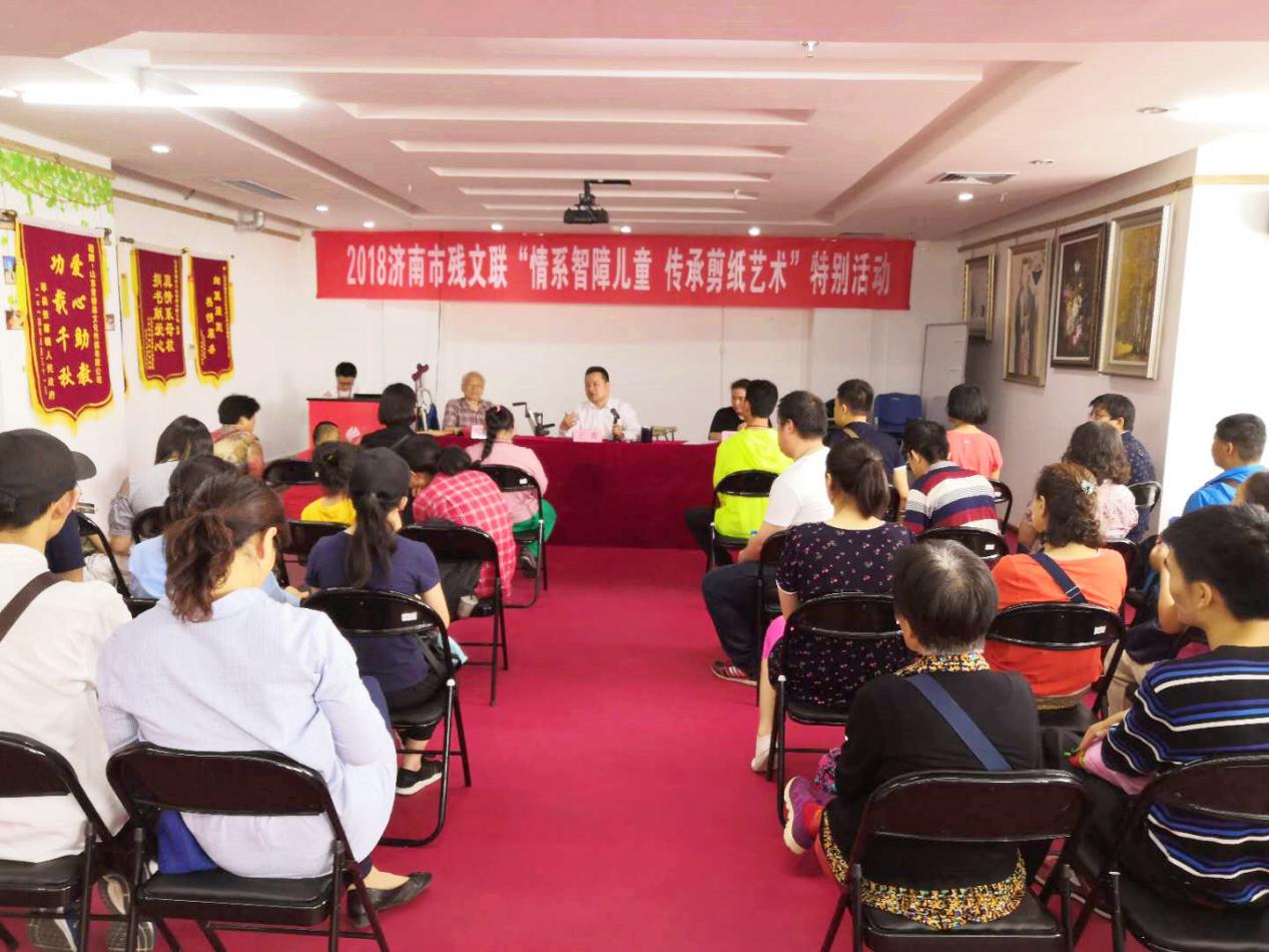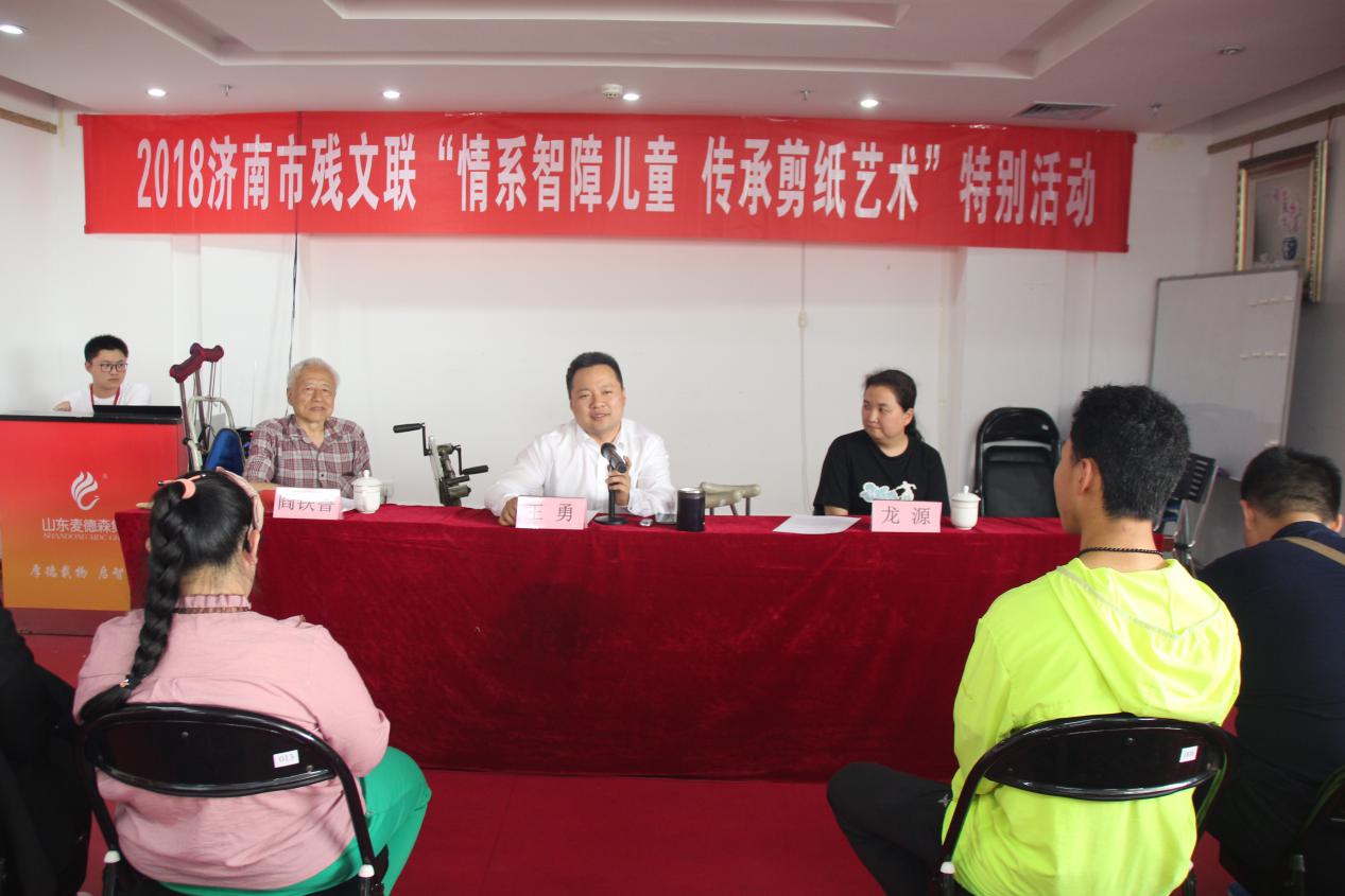 為進一步推進文藝助殘工作,豐富殘疾人精神文化生活,讓智障兒童在和諧的社會氛圍中感受到社會關愛和文化魅力。5月26日,由濟南市殘疾人文學藝術界聯(lián)合會主辦的“情系智障兒童 傳承剪紙藝術”特別活動,在山東麥德森集團多功能活動室拉開帷幕,市殘聯(lián)主席團副主席、市殘文聯(lián)主席王勇,市殘文聯(lián)民間藝術協(xié)會主席閻鐵魯?shù)人囆g家出席此次活動。