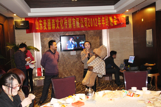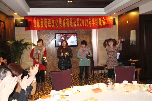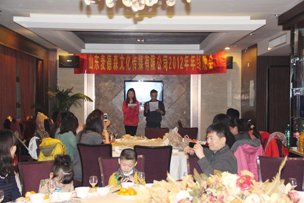 2013年2月2日,山東麥德森文化傳媒有限公司年終晚會(huì)勝利在筷樂(lè)瀟湘酒店舉行。首先王勇董事長(zhǎng)為晚會(huì)致辭,他指出公司經(jīng)過(guò)近7年的發(fā)展,特別是在2012年無(wú)論是從公司管理、企業(yè)文化、員工的向心力、凝聚力上,還是從圖書(shū)選題策劃和編輯出版的工作流程、工作效率等方面,都有很大的的突破和提高!同時(shí)也講解了2013年公司發(fā)展的方針政策以及員工的福利待遇,贏得了員工陣陣歡呼聲,員工紛紛感慨 “公司發(fā)展情景真美好,跟著這樣的領(lǐng)導(dǎo)錯(cuò)不了!”